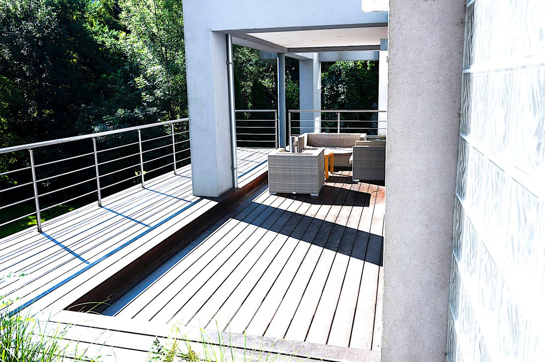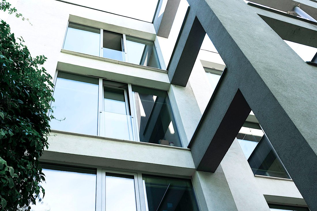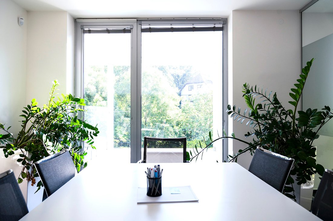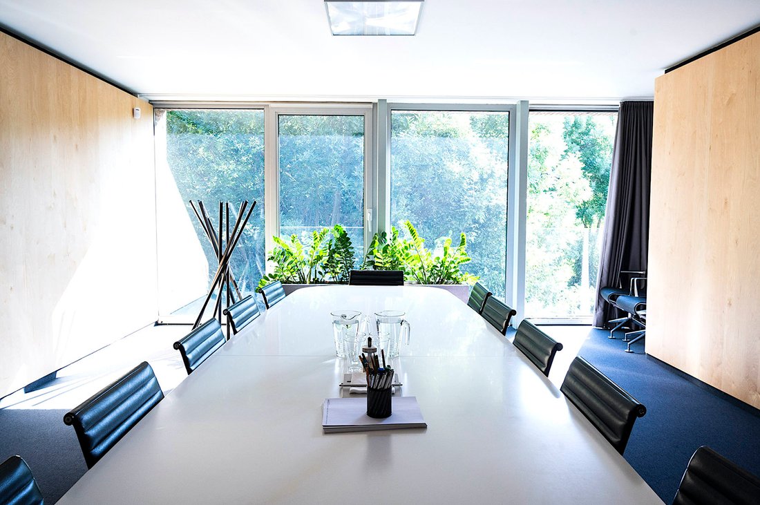 • Haupteingang zur Villa, Rezeption, Besprechungsraum, 6x Büro, Kopierer, Sanitäranlagen, Küche, Terrasse