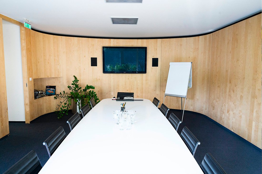 Erster Stock (168 qm) • 2x Tagungsraum, 5x Büro, Sanitäranlagen, Terrasse